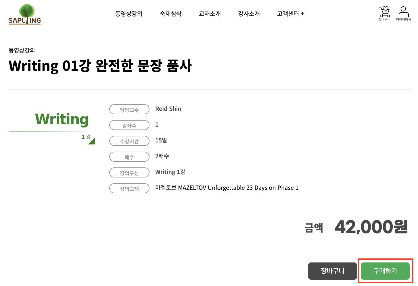 * 강의배수 수강 2회인 경우, 수업 1회 수강은 컨텐츠 이용으로 간주